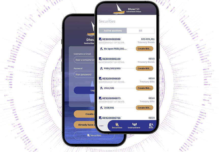 You can now open and manage a CSD investment account at the Central Bank of Kenya allowing you to participate in securities auctions, view auction results and payment details, view upcoming corporate actions, access updated portfolio statements and initiate secondary market and pledge instructions via the app in a convenient, simple, efficient and secure manner.